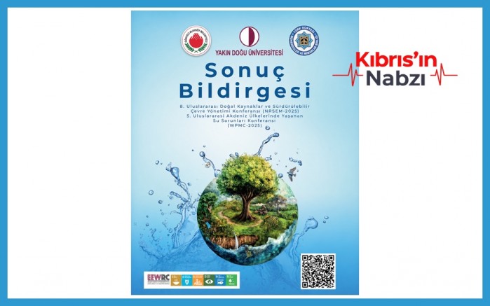 Yakın Doğu Üniversitesi, Gönyeli–Alayköy Belediyesi ve Türk Dünyası Mühendisler ve Mimarlar Birliği iş birliğiyle aralık ayında düzenlenen 5. Uluslararası Akdeniz Ülkelerinde Yaşanan Su Sorunları Konferansı (WPMC2025) ile 8. Uluslararası Doğal Kaynaklar ve Sürdürülebilir Çevre Yönetimi Konferansı (NRSEM2025) Sonuç Bildirgesi kamuoyuyla paylaşıldı.