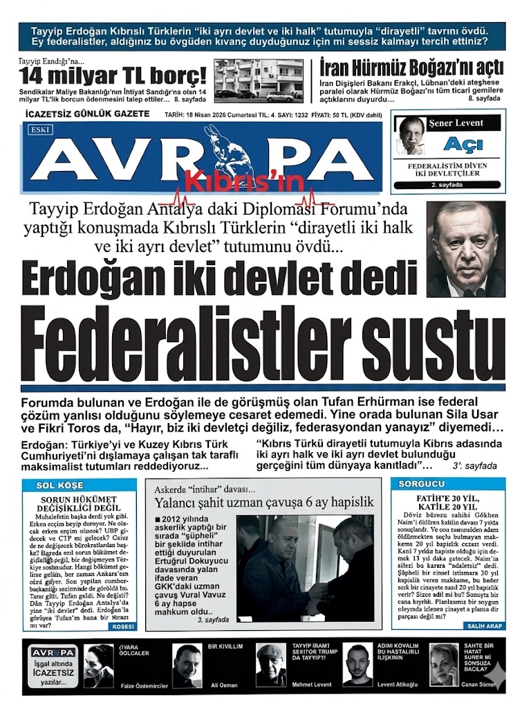 GAZETE MANŞETLERİ 18 NİSAN 2026 CUMARTESİ