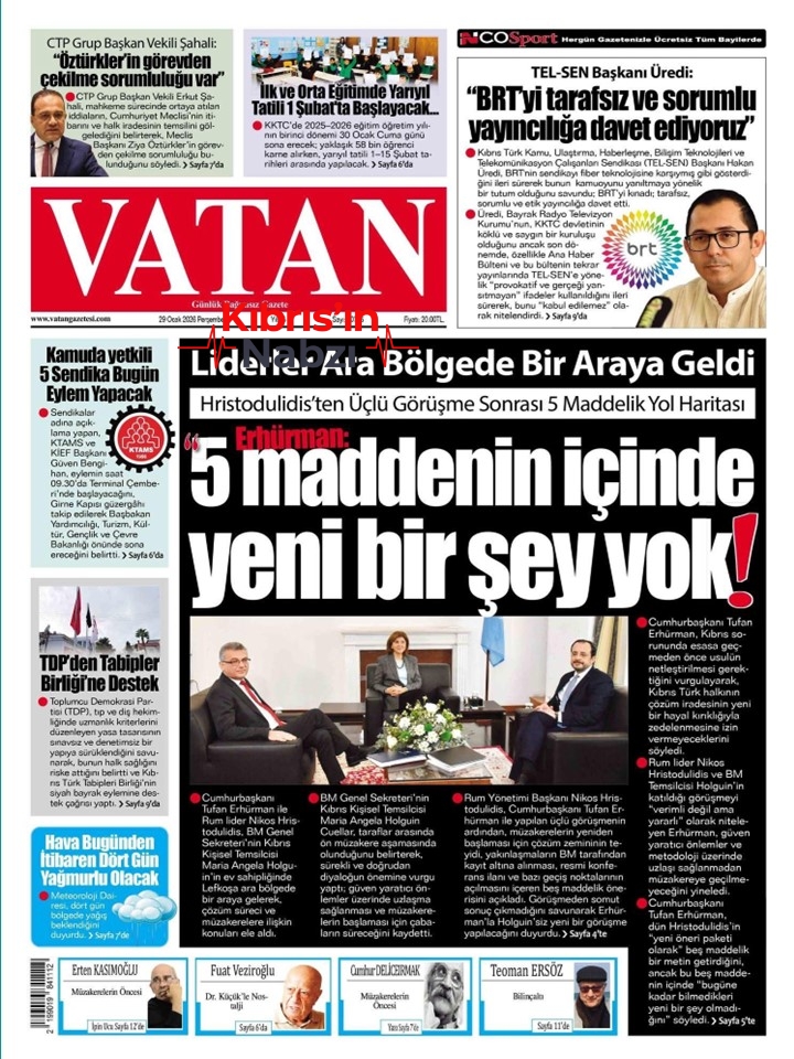 GAZETE MANŞETLERİ 29 OCAK 2026 PERŞEMBE