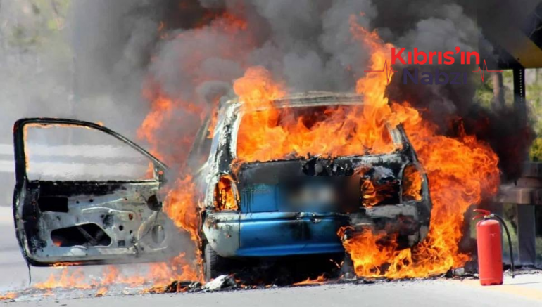 Lefkoşa Kızılbaş Çemberi mevkiinde, seyir halindeyken alev alan araç bölgedeki vatandaşların yardımıyla söndürüldü.